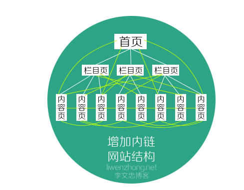 很多站长朋友做内链的时候可能仅仅是从内容页链接到首页,那么为了让整站的内链做得更加强大,我们需要多样化,我们可以从内容而,链接到内容页,也可以链接到栏目页,首页。这样有助于整站的链接打通,方便蜘蛛更深入爬行。如下图示: